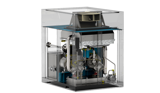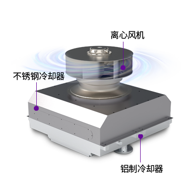 冷卻系統(tǒng)采用潤滑油冷卻、冷卻水冷卻、中間冷卻、后部冷卻集成一體式設(shè)計,保證整機各系統(tǒng)冷卻效果的同時減小空間,結(jié)構(gòu)緊湊。其中中間冷卻和后部冷卻分別采用了不銹鋼冷卻器+鋁制冷卻器二級冷卻方式,由主機排出的高溫壓縮空氣先經(jīng)過不銹鋼冷卻器預(yù)冷,再進入鋁制冷卻器,保證鋁制冷卻器在可接受溫度下安全可靠的工作。搭配低轉(zhuǎn)速、低噪音、高風(fēng)壓離心式風(fēng)機,使整機各系統(tǒng)在合理溫度范圍運行,提高機器可靠性。