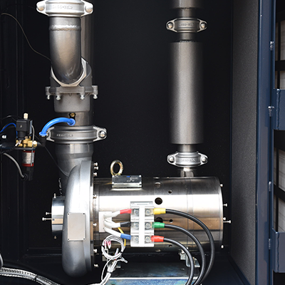 捷豹離心式鼓風(fēng)機完整的自冷卻系統(tǒng),連接到電機軸上的冷卻風(fēng)扇在電機旋轉(zhuǎn)時旋轉(zhuǎn)并吸入外部冷空氣,冷空氣經(jīng)過電機用來冷卻電機后再被排到機器外面。
